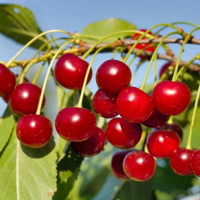 petite cerise rouge ( guigne ) , juteuse, sucrée et acidulée