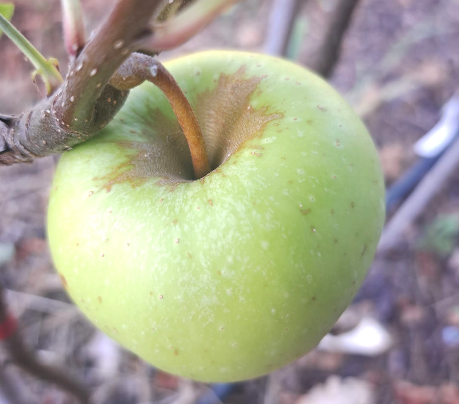 Le fruit : Grosse pomme jaune clair avec partie rosée à l’insolation