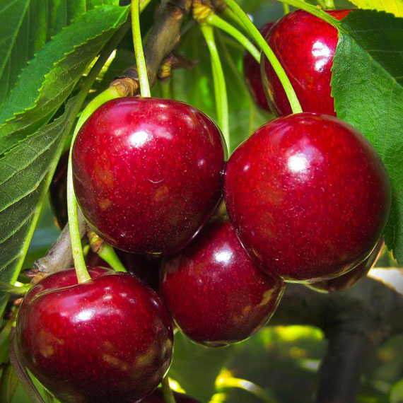 Variété très productive, offrant des fruits à la peau brillante de couleur rouge foncé